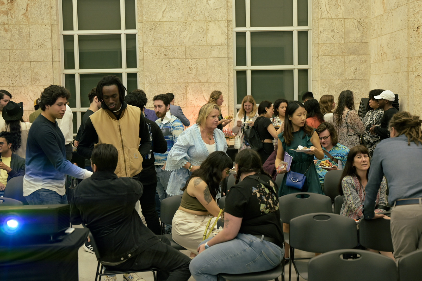 The Fireside panel discussions aim to especially connect audiences with speakers and often complex, nuanced topics of conversation. In support of the program's intimate vision for public dialogue, panelists and moderators actively encourage audience interaction throughout the discussion, promoting uniquely intimate and sincere exchanges between artists and audiences alike meant to resemble conversation between close friends by a fireside.